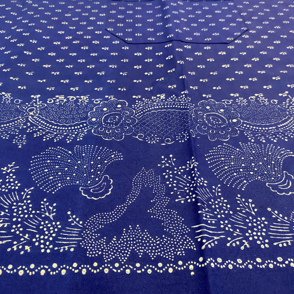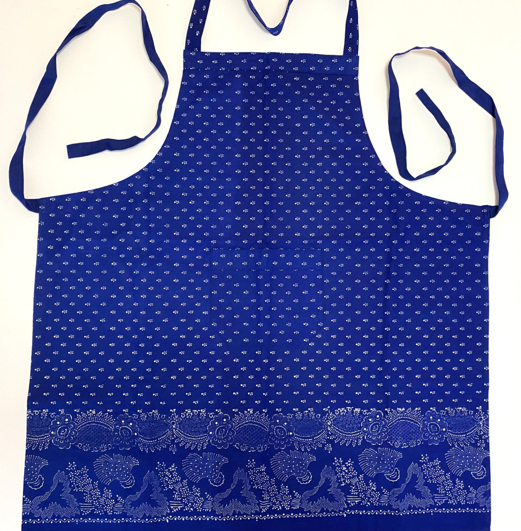 Eredeti kézzel mintázott bordűrös kékfestő kötény, csipke nélkül.