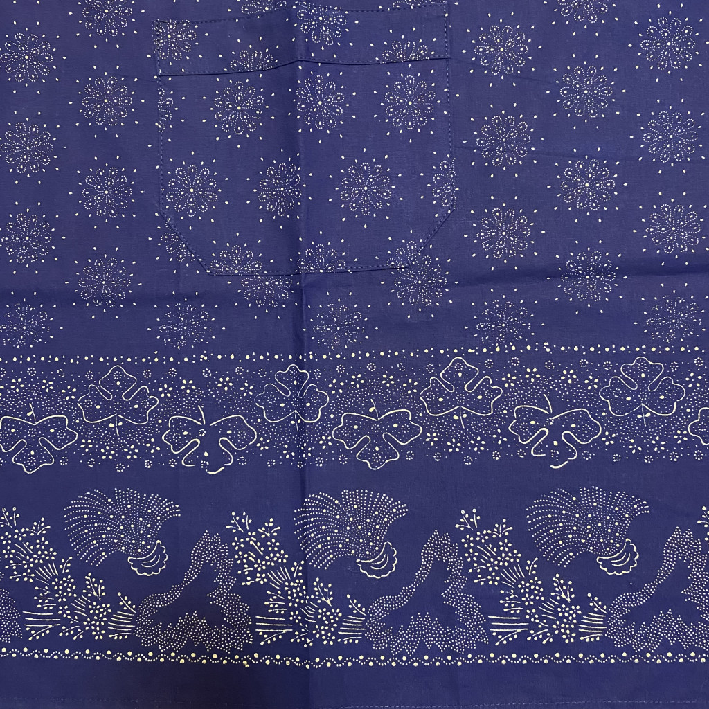 Eredeti kézzel mintázott bordűrös kékfestő kötény, csipke nélkül.